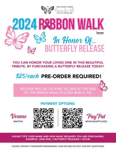 Download the form below, fill it out digitally (preferred) or manually. Please send the form to pinkheartfunds@gmail.com and title the email "Ribbon Walk Sponsorship".